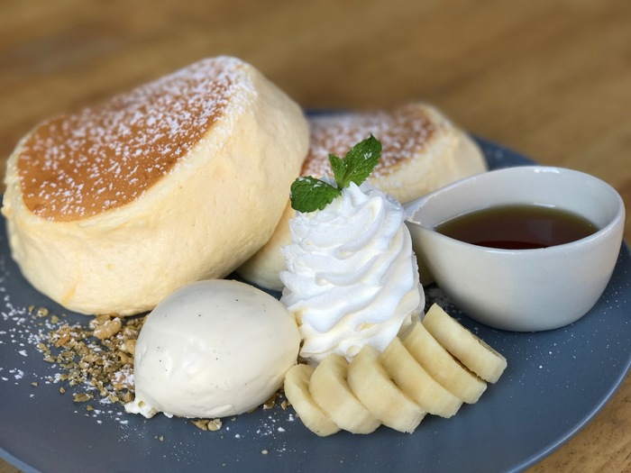 高さがあるパンケーキと季節のフルーツとの組み合わせが最高の一品になってます。